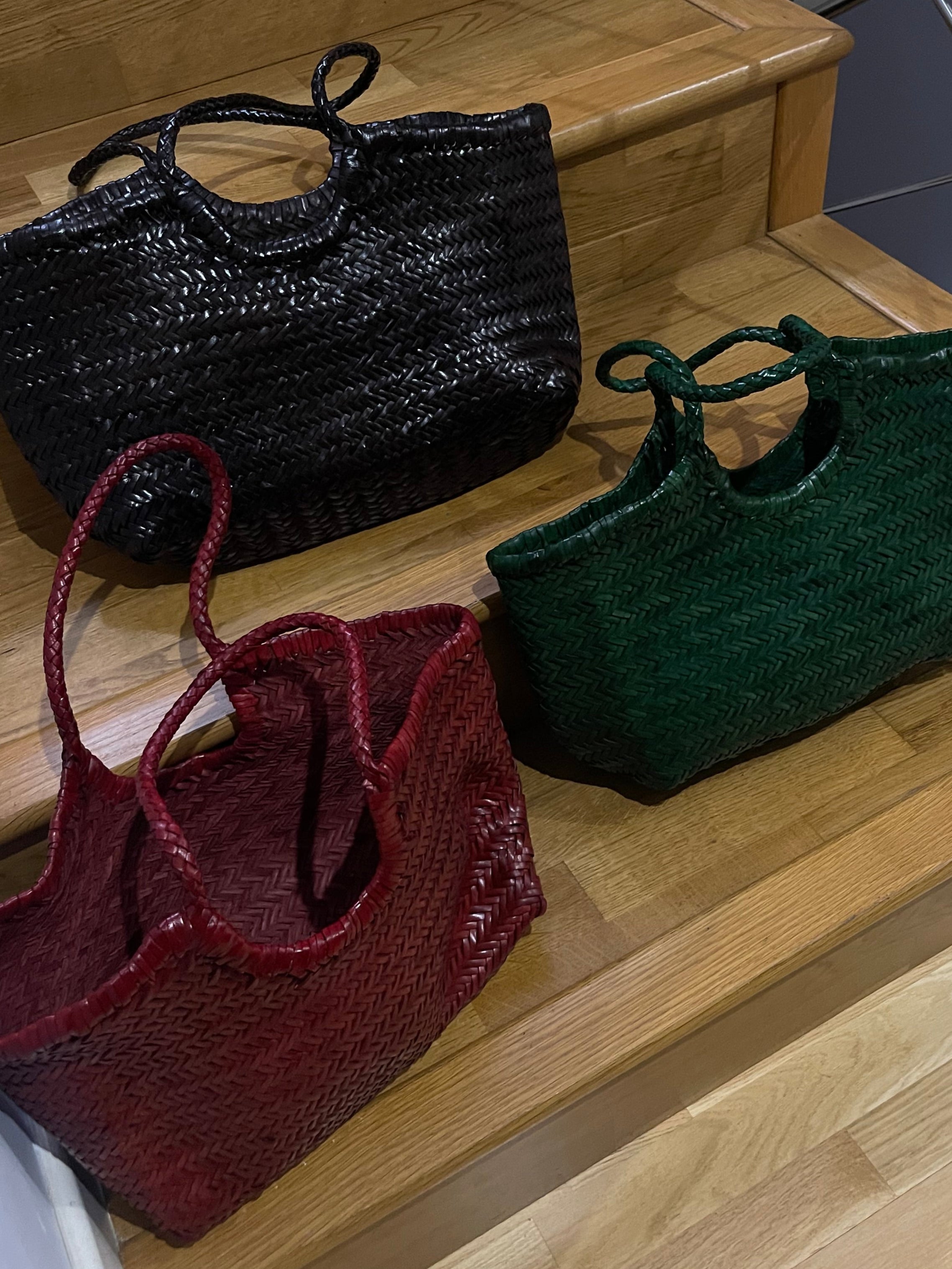 Cada bolso ha sido tejido a mano por un experto artesano en nuestra fábrica de Chennai, India. Son pieza únicas, diferentes entre sí, y con una belleza única pensada que llevarla toda la vida.